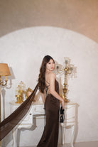 (In-stock 現貨)【Luna Palace 自家品牌】Athena Maxi Dress in Dark Brown 露背長連身裙 (深啡色)