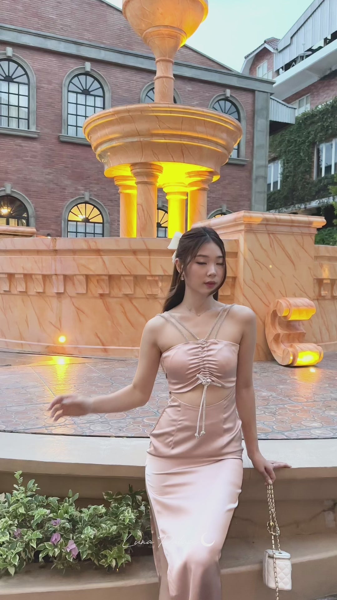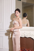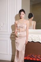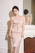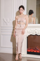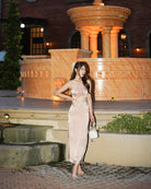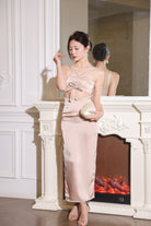 (In-stock 現貨)【Luna Palace 自家品牌】Giselle Midi Dress in Rose Dust 閃石肩帶中長連身裙 (藕灰色)