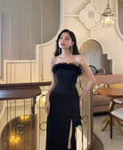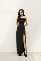 (In-stock 現貨)【2色】【越南小眾品牌】Charlee Maxi Dress 毛毛飾邊長連身裙