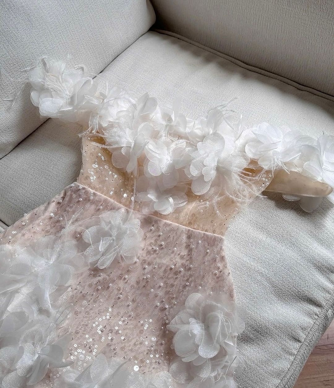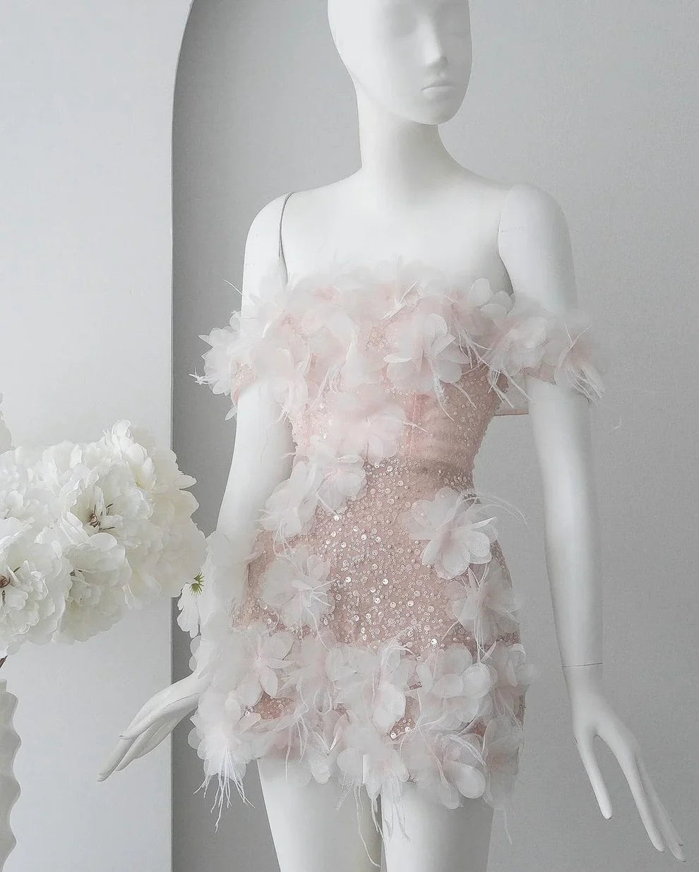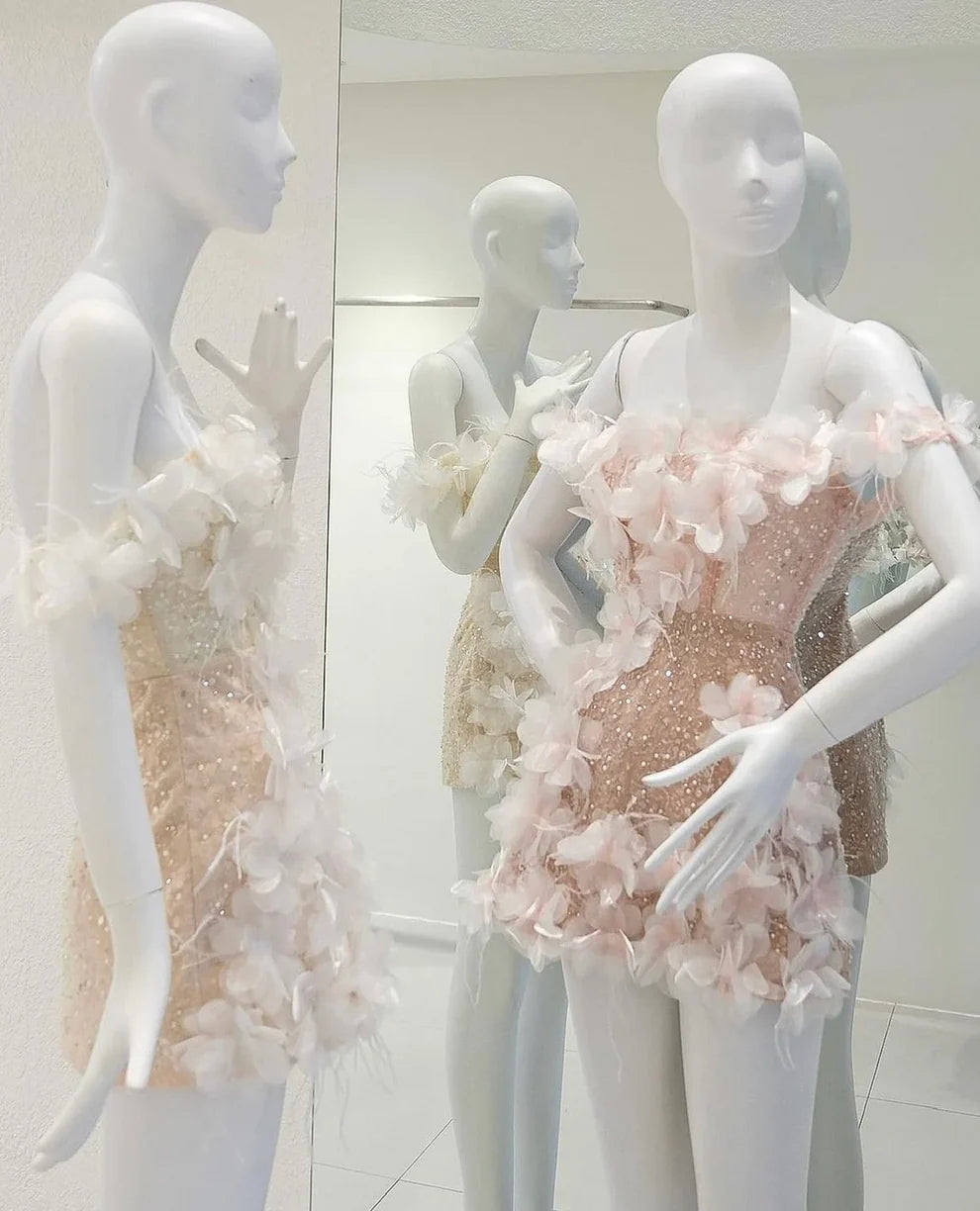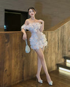 • ♡ The dress features a sheer mesh design and should be paired with skin-toned breast petals or a half-length shapewear 使用禮服透紗網設計,需配搭膚色胸貼或半截式塑身衣