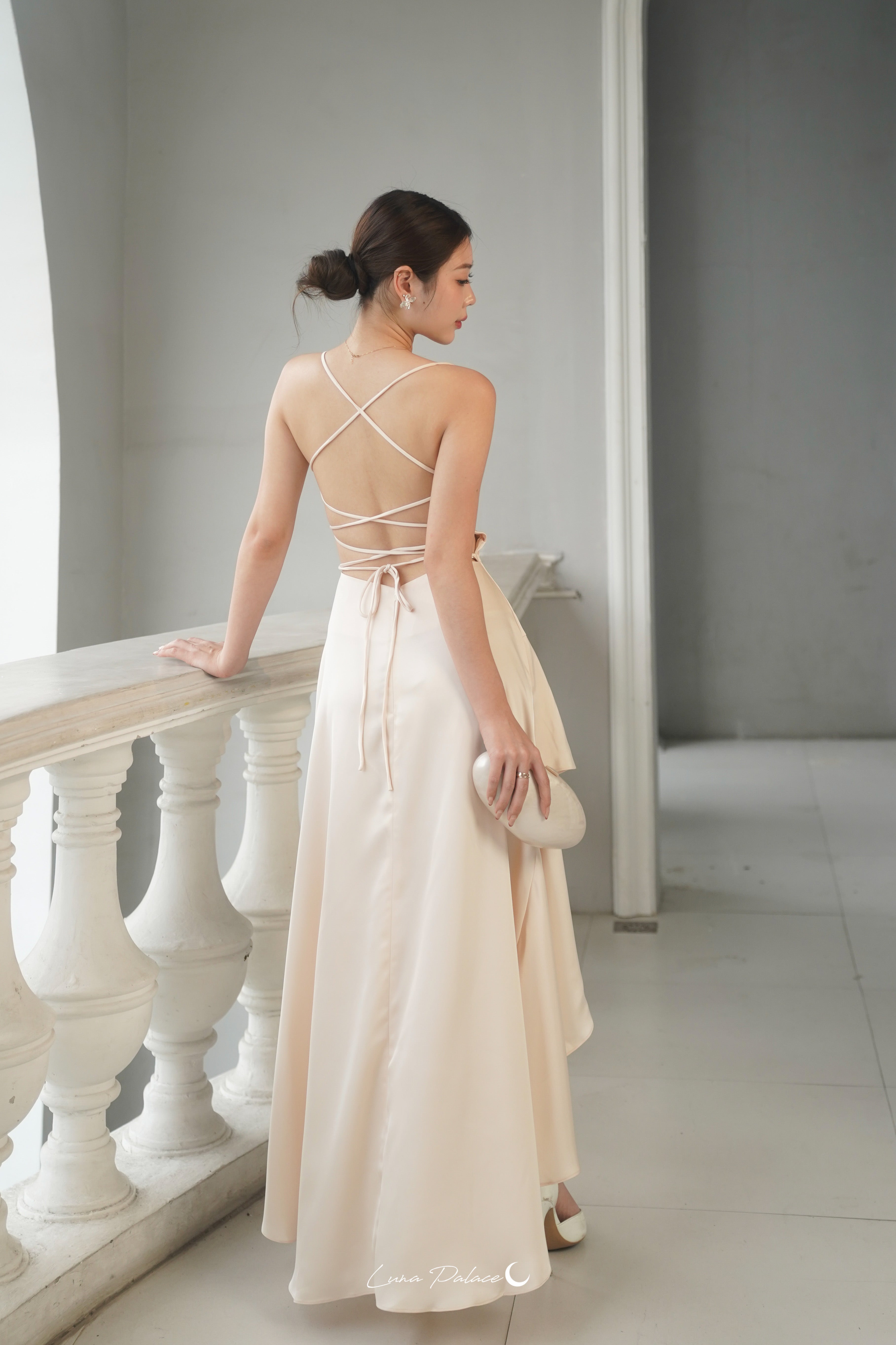 (In-stock 現貨)【Luna Palace 自家品牌】Kiss Me Maxi Dress in Antiquewhite 露背長連身裙 (仿古白色)