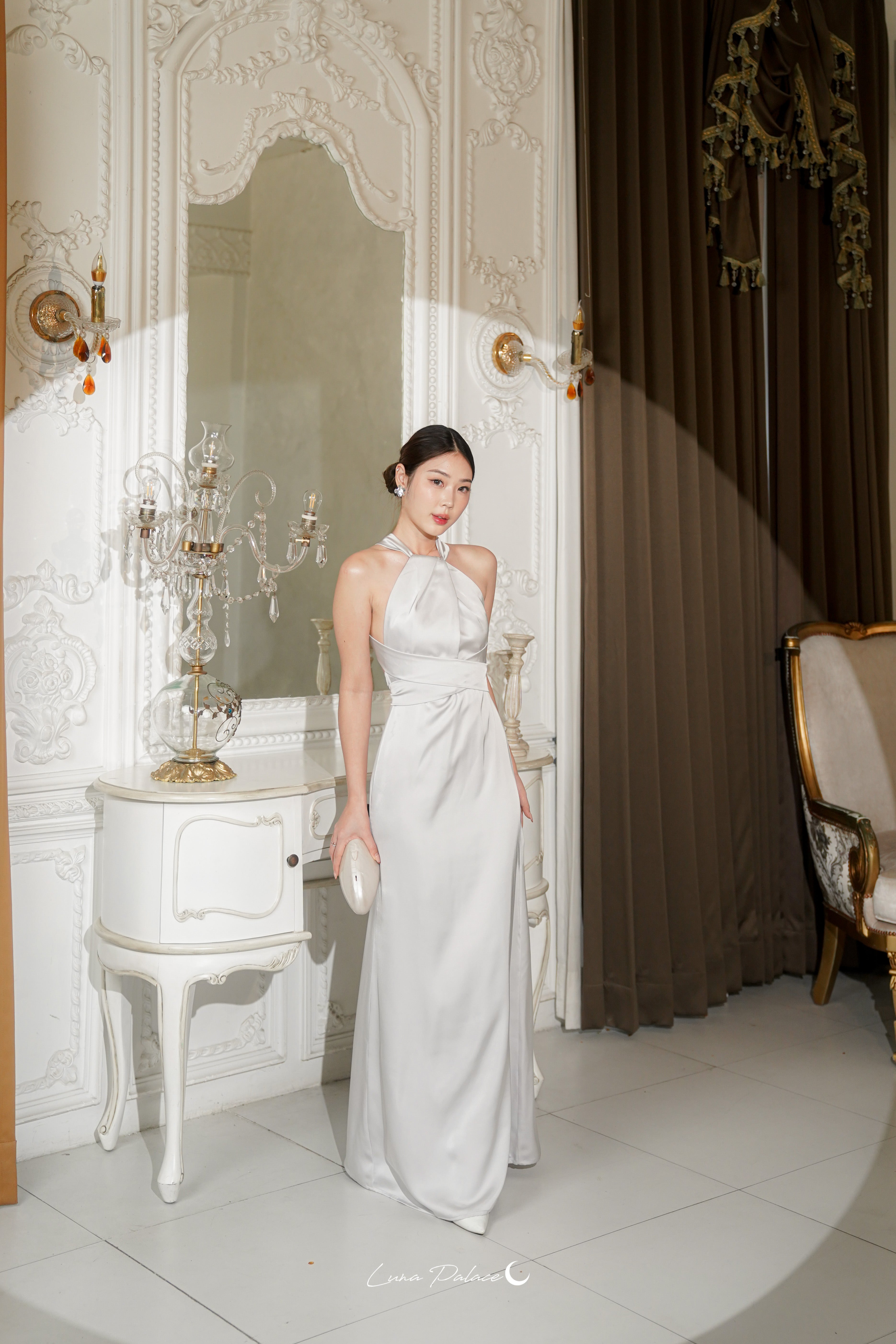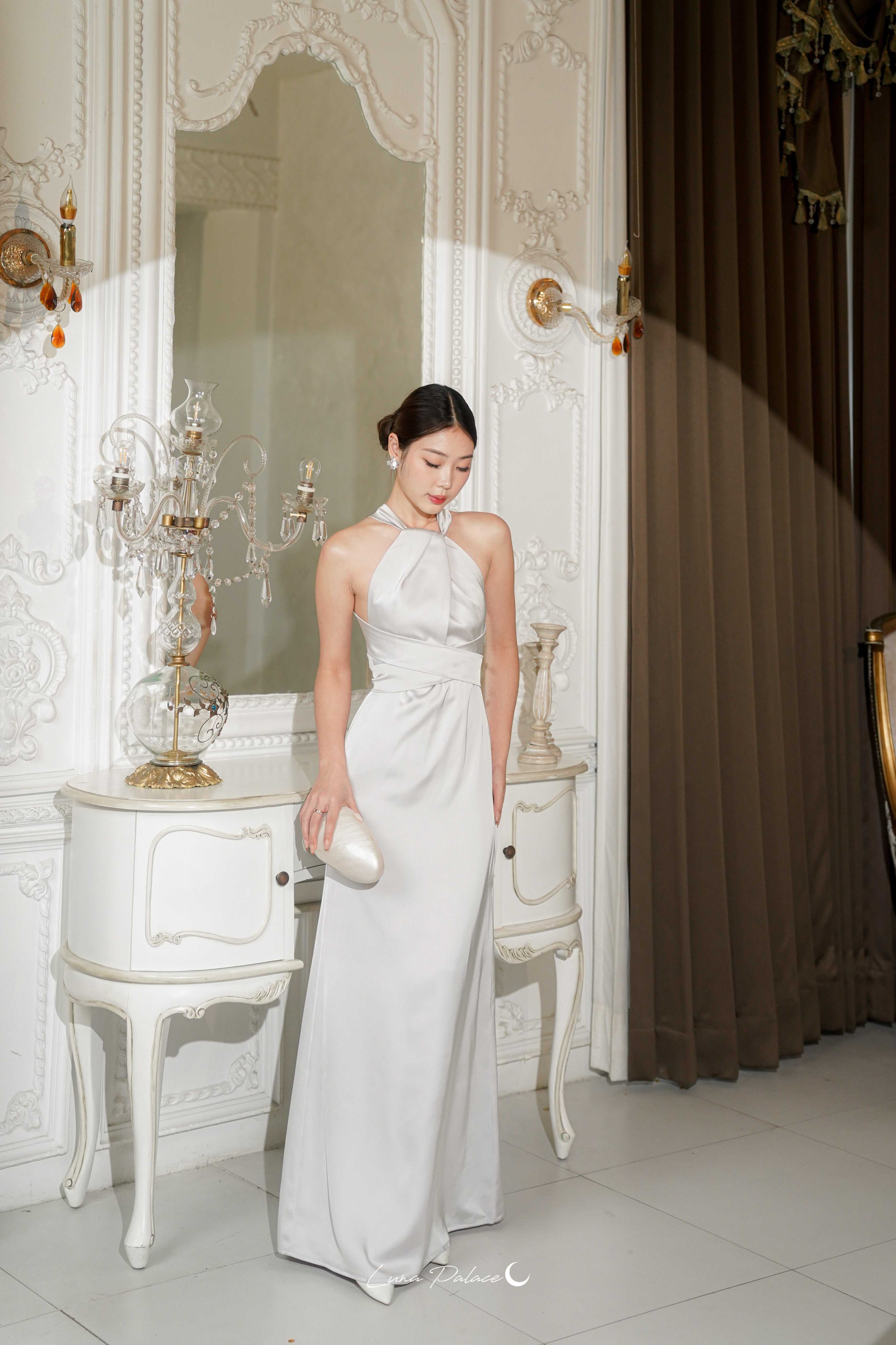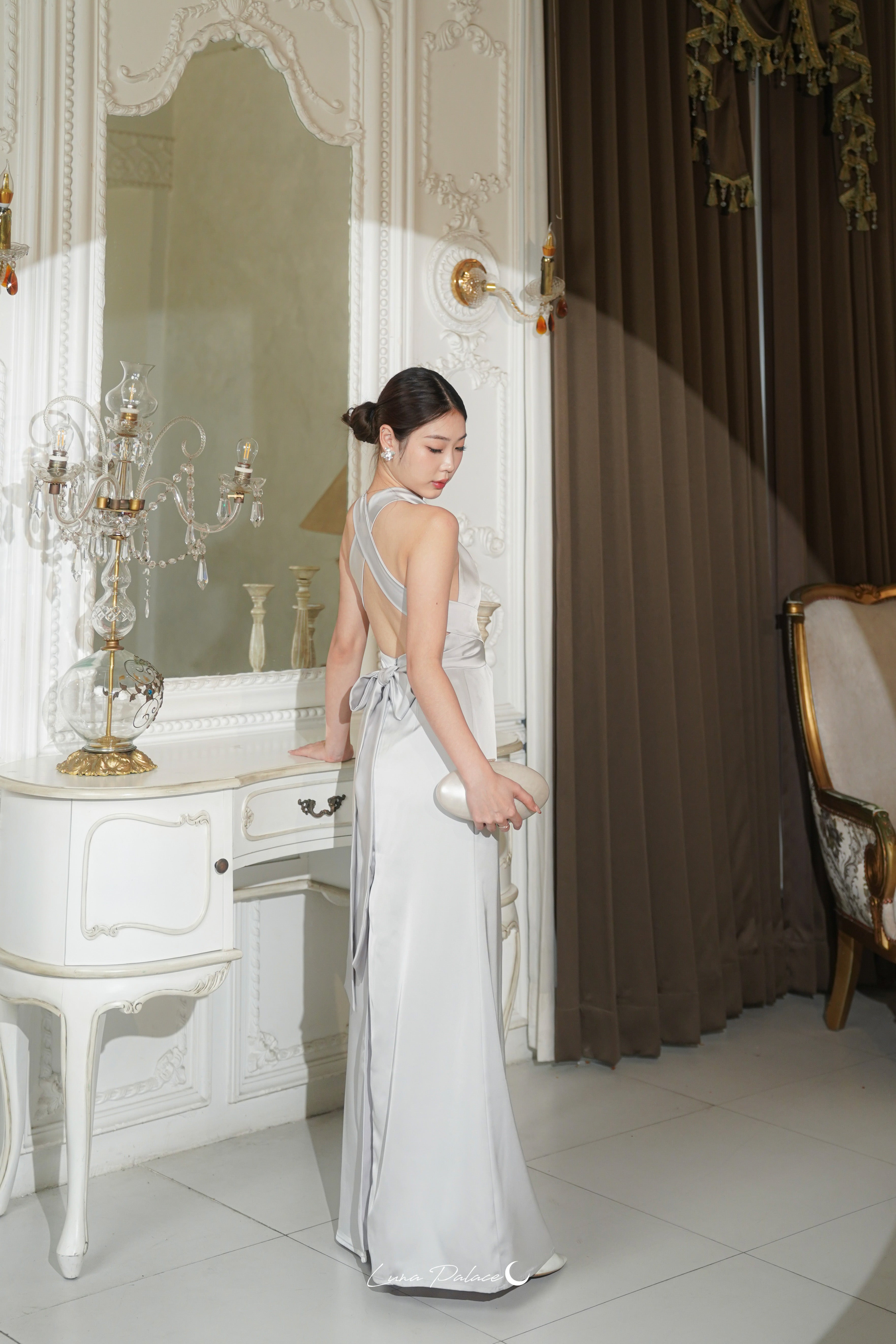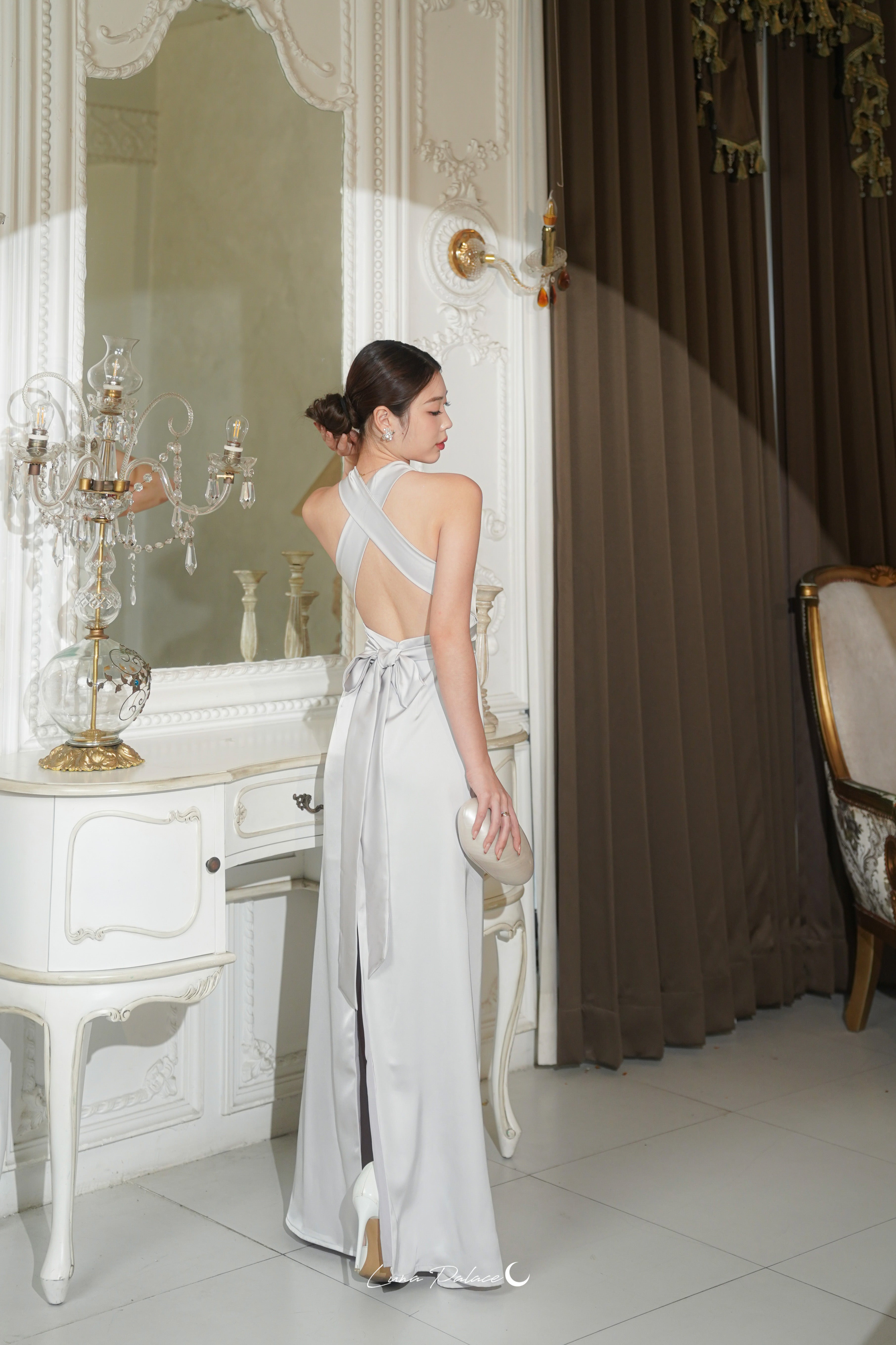 (In-stock 現貨)【Luna Palace 自家品牌】Kristine Maxi Dress in Silver 露背長連身裙 (銀灰色)