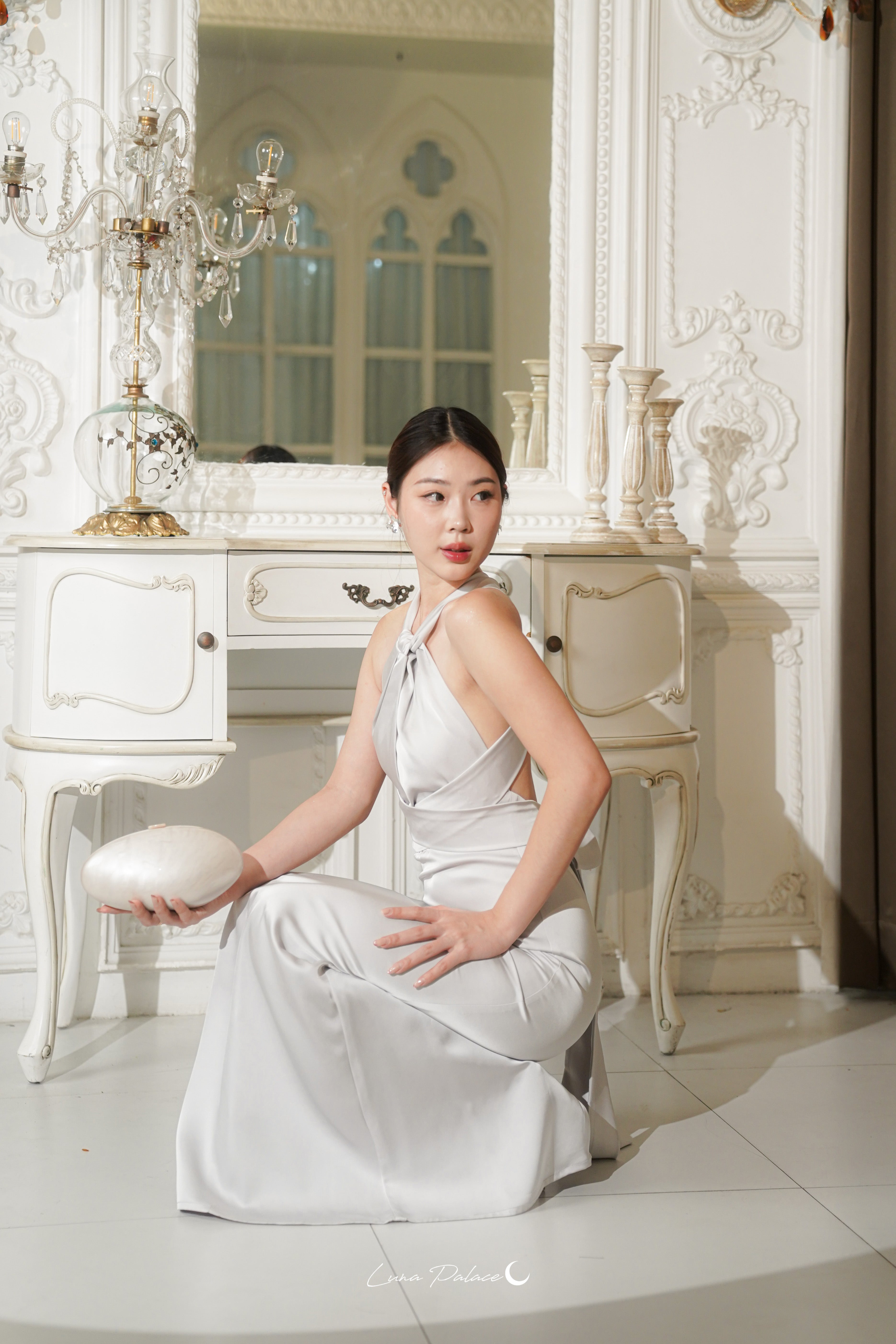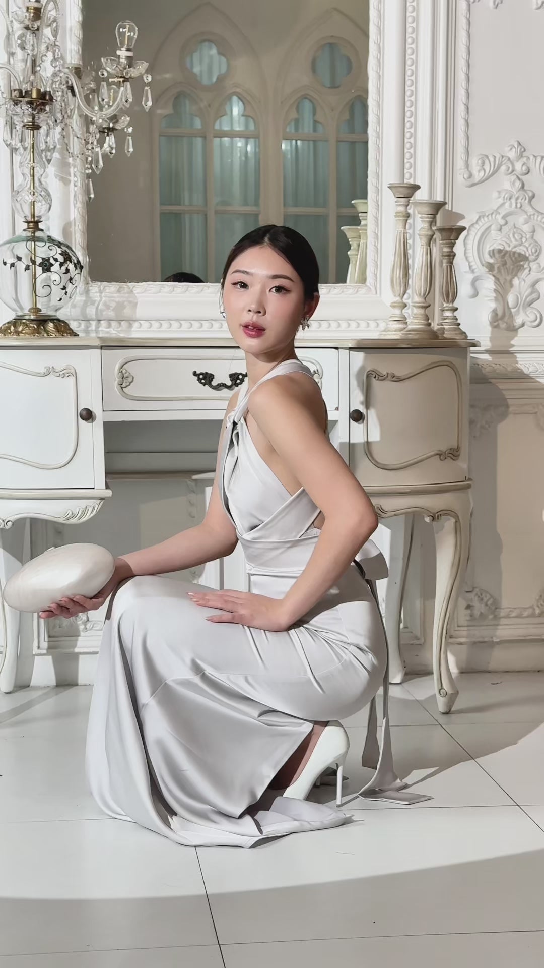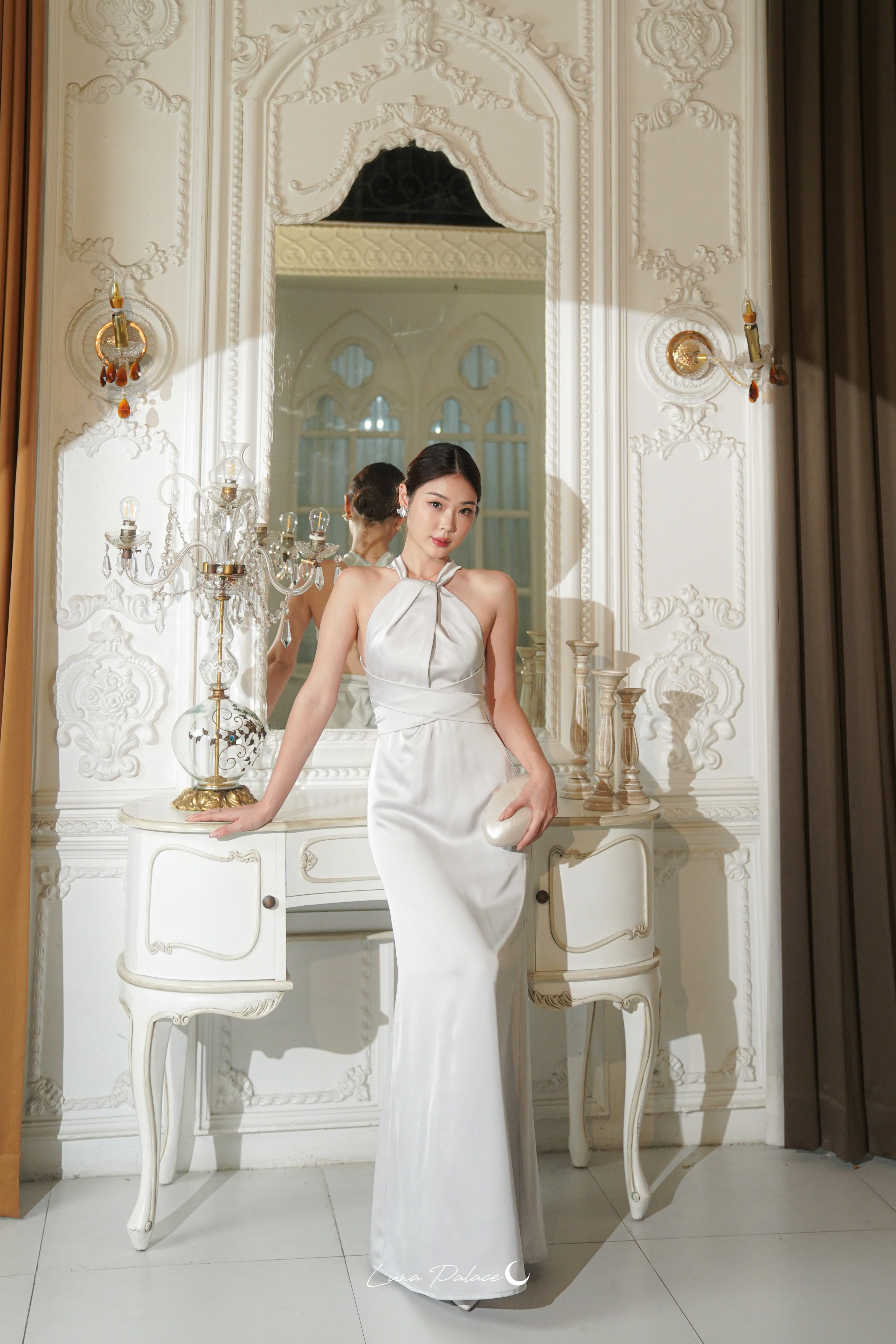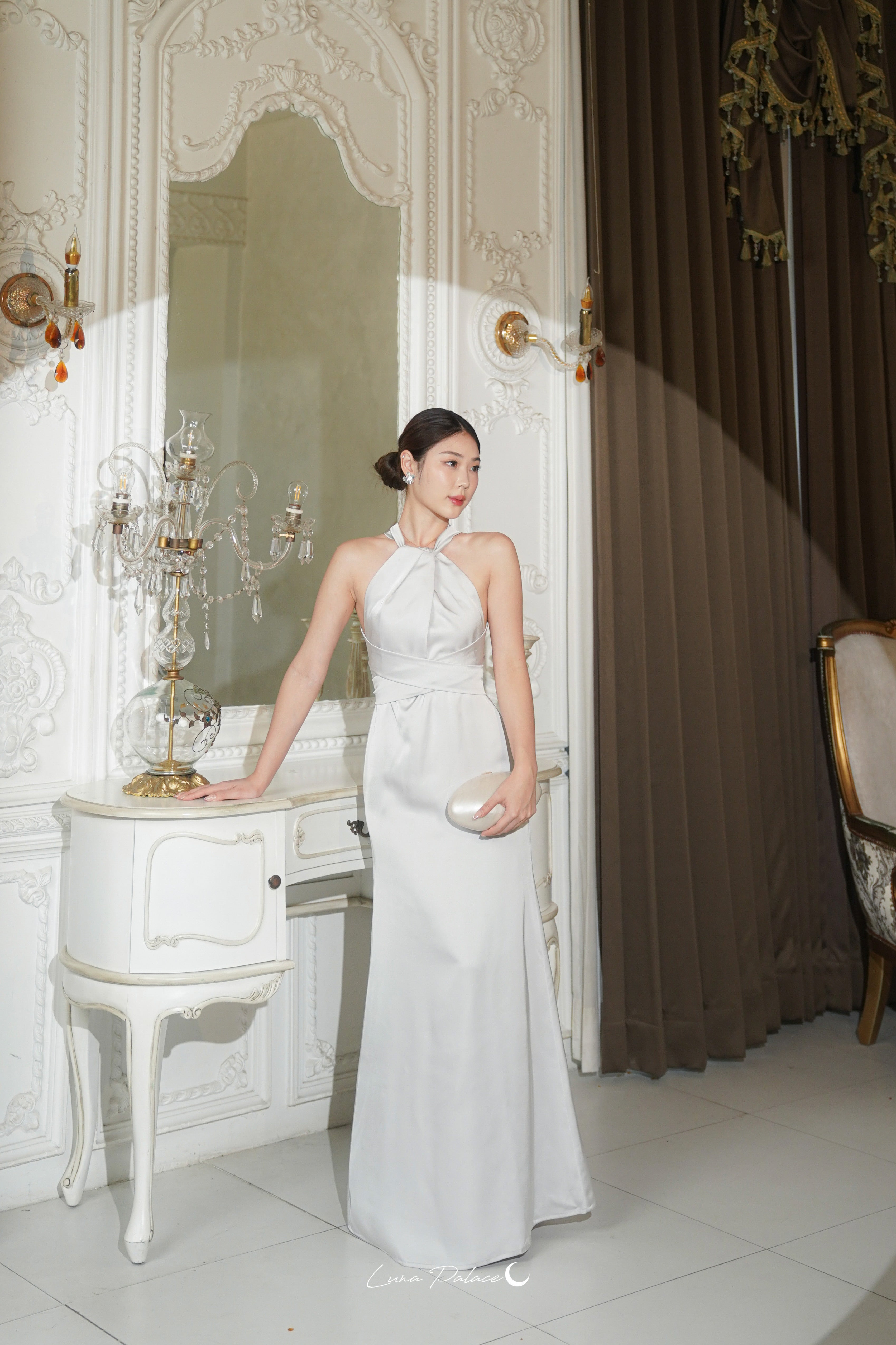 (In-stock 現貨)【Luna Palace 自家品牌】Kristine Maxi Dress in Silver 露背長連身裙 (銀灰色)